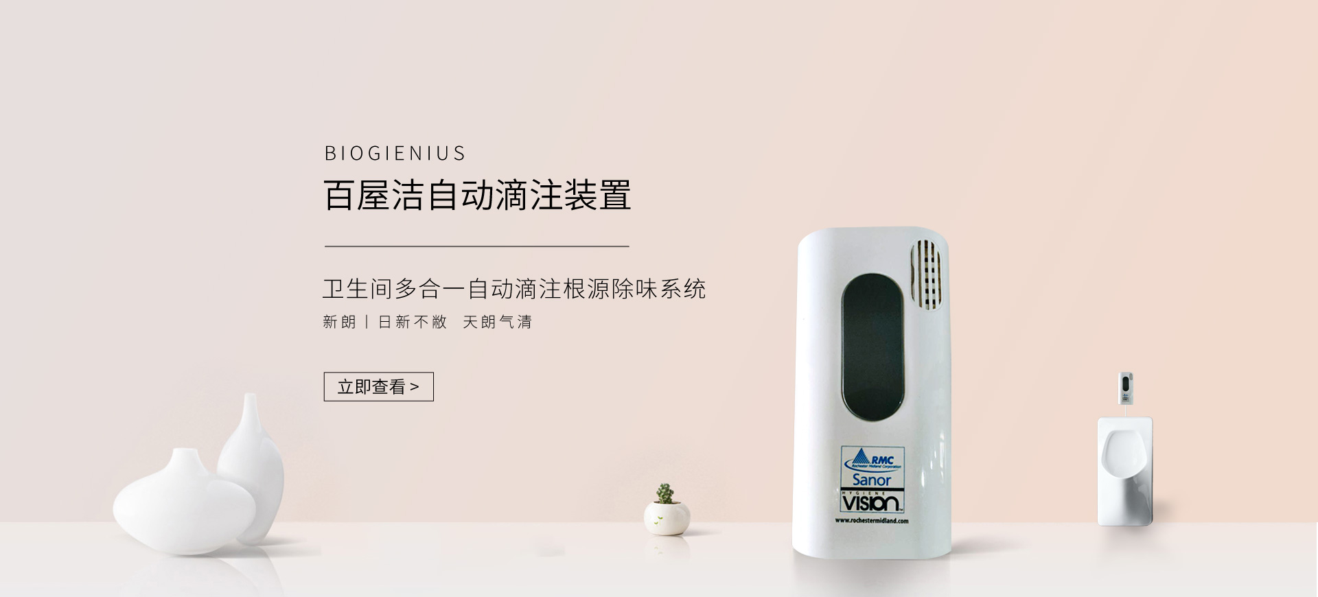 新朗環(huán)境自2015年起與美國(guó)具百年歷史的跨國(guó)企業(yè)RMC(Rochester Midland Corporation)合作, 進(jìn)口 RMC用于機(jī)械制造、交通運(yùn)輸、航天航空、石油化工、食品禽肉乳制品加工等工業(yè)生產(chǎn)制造行業(yè)的專(zhuān)業(yè)清洗、滅菌系列產(chǎn)品,以及酒店、CBD大廈、學(xué)校(包括幼稚園)、醫(yī)療機(jī)構(gòu)、百貨商場(chǎng)、養(yǎng)殖業(yè)、餐飲業(yè)等商用行業(yè)清潔、消毒系列產(chǎn)品,還有專(zhuān)用于各個(gè)行業(yè)單位“廁所革命”的公共衛(wèi)生間根源除味第5代SANOR?衛(wèi)生間自動(dòng)滴管系統(tǒng)、第6代百屋潔SIOGIENIUS?電子控制衛(wèi)生間自動(dòng)滴注系統(tǒng)等系列產(chǎn)品項(xiàng)目。